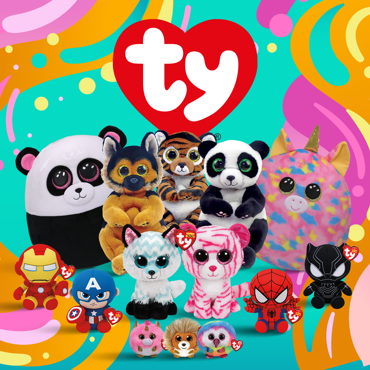 Najbardziej znanymi produktami są Beanie Babies oraz Beanie Boos. W ofercie znajdziemy maskotki, breloczki, poduszki, zabawki z dźwiękiem, pluszaki licencyjne.
