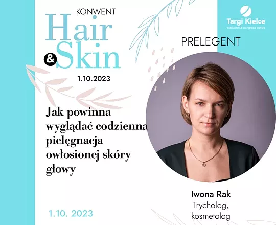 Iwona Rak to absolwentka Śląskiej Wyższej Szkoły Medycznej w Katowicach. Od trzech lat łączy pasje z pracą prowadząc własny gabinet trychologiczno-kosmetyczny. W pracy na pierwszym miejscu stawia na holistyczne podejście do problemu z którymi przychodzą klienci tj. łysienie telogenowe, androgenowe, plackowate, łuszczyca, łzs czy azs. Największą satysfakcję odczuwa gdy osoby wychodząc z jej gabinetu odzyskują na nowo pewność siebie. W trakcie konwentu Hair & Skin, Iwona Rak wprowadzi uczestników w temat codziennej pielęgnacji skóry głowy podczas prelekcji pt. „Jak powinna wyglądać codzienna pielęgnacja owłosionej skóry głowy”.